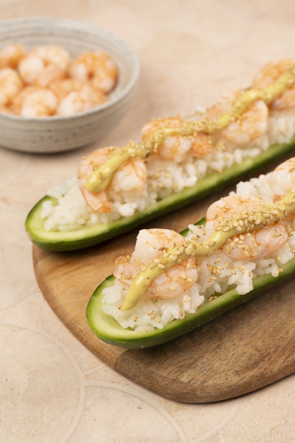 These Sushi Cucumber Boats are the perfect fresh, crunchy, and protein-packed snack. Simple, delicious.