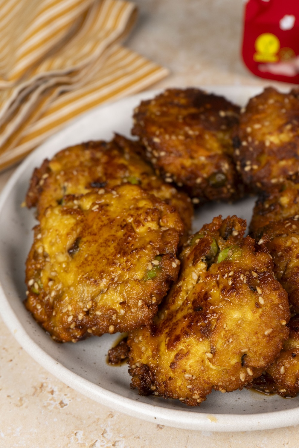 Carefully heat oil in a pan to 160°C and deep-fry the patties in batches for 3 minutes until golden.