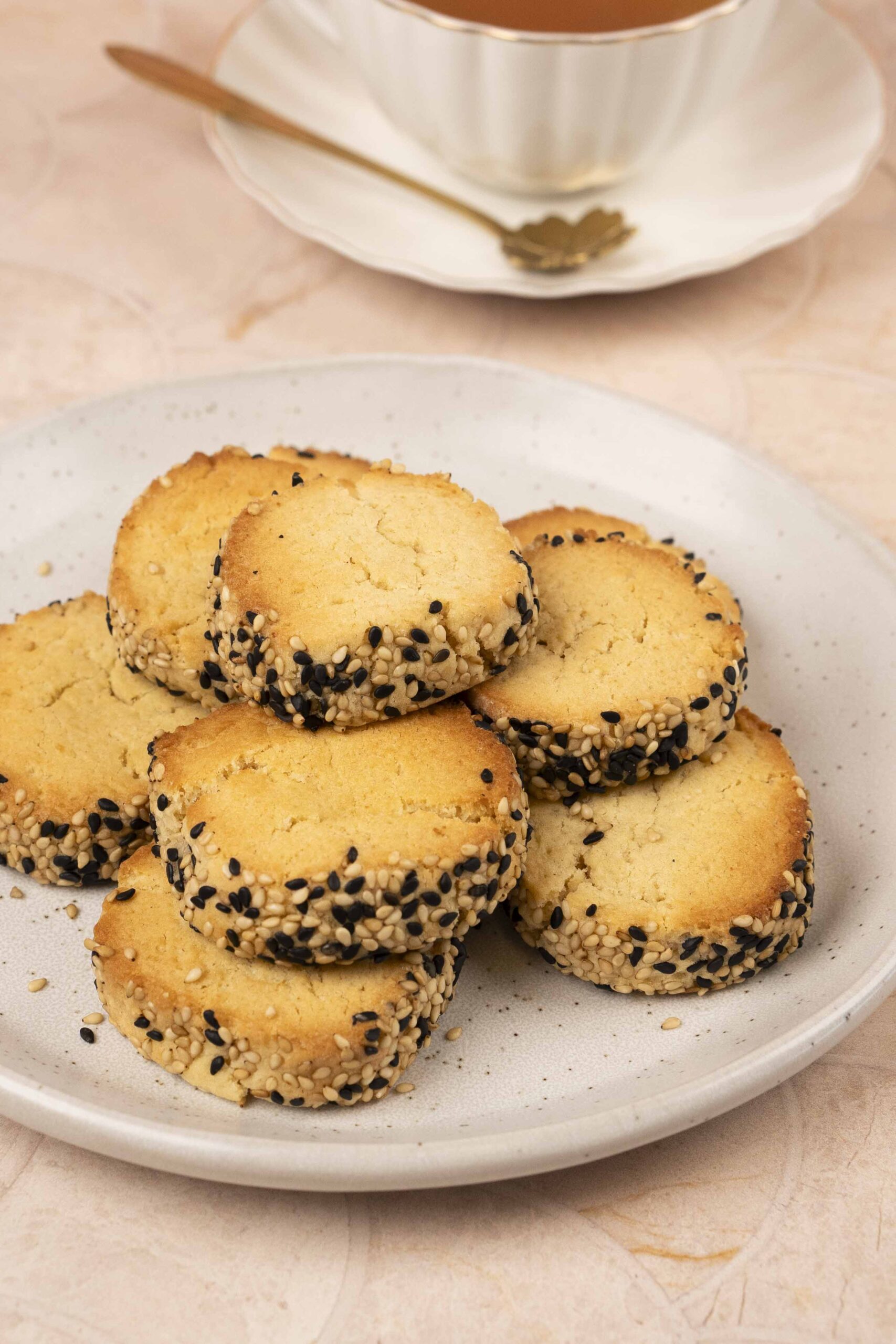 Roll dough in the sesame seeds until well covered, and wrap in plastic.