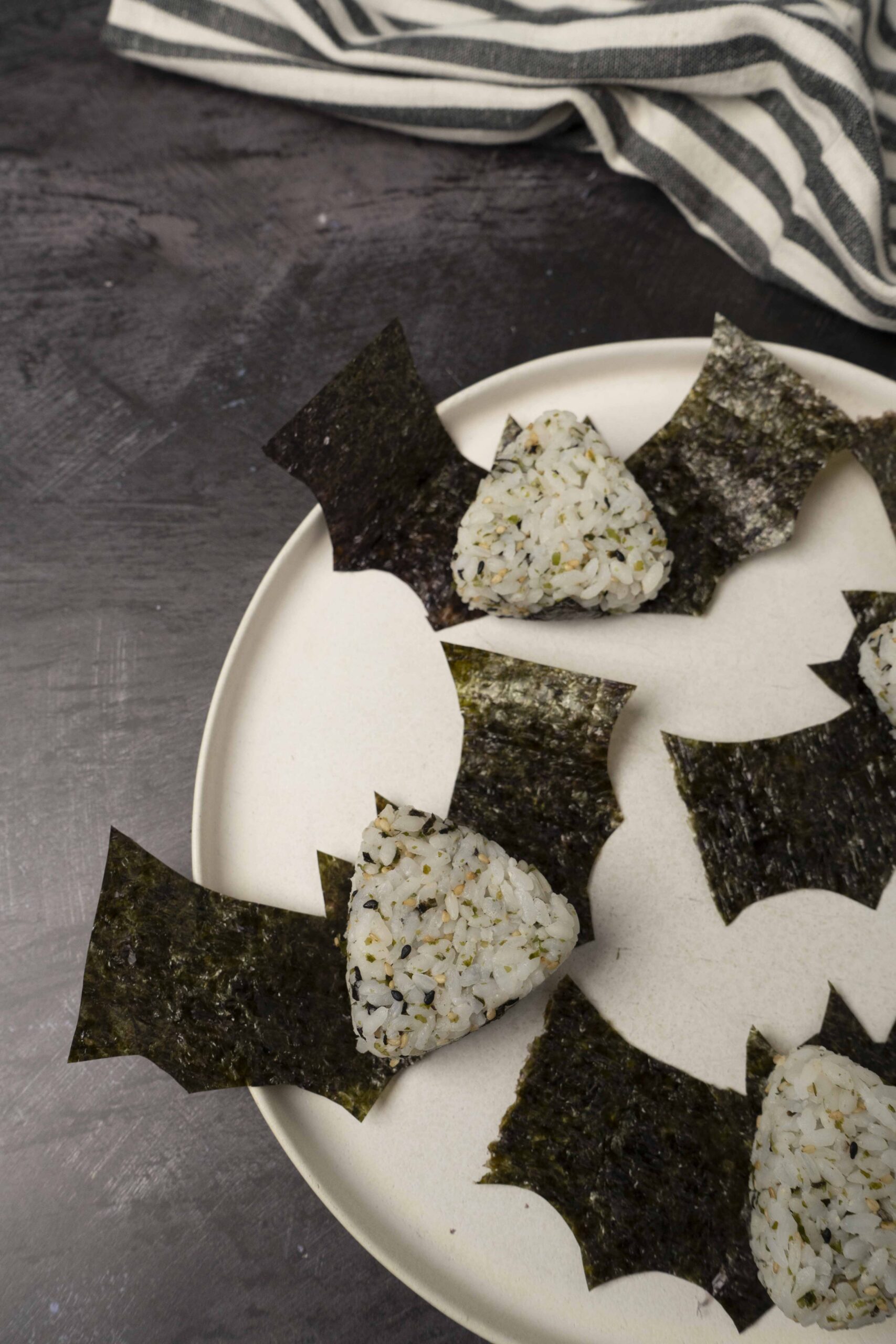 These onigiri bats are a boo-tiful addition to any Halloween spread.